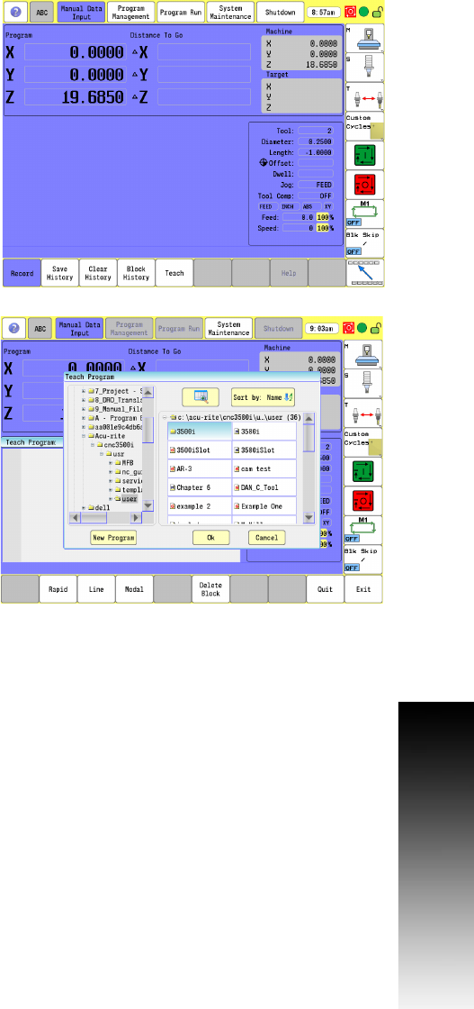 To enter MDI Teach use the Teach button on the second set of menu