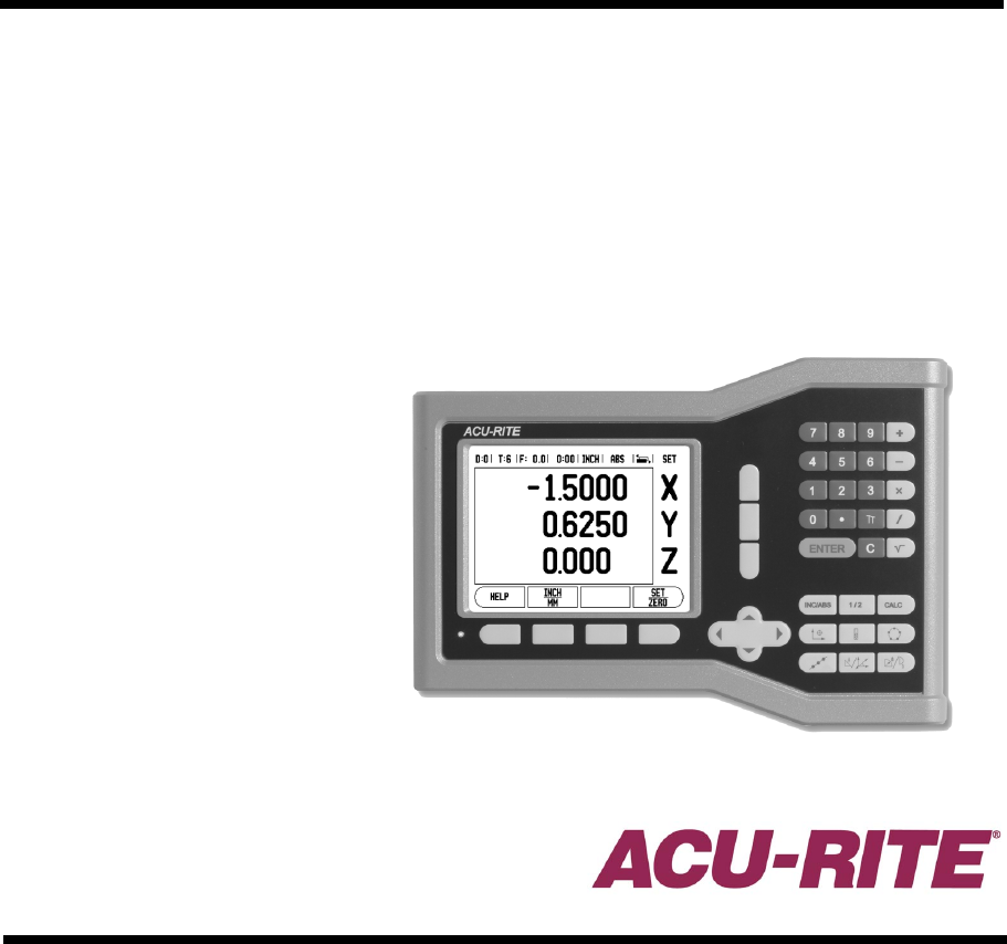 1/2 Hard Key ... 22 A Absolute ... 10 Absolute coordinates ... 3 Absolute Distance Preset ... 19 Absolute Workpiece Positions ... 3 Actual Position, Nominal Position, and Distance-To-Go ... 2 Actual Value/Distance-To-Go soft key ... 10 Arc Milling hard key ... 7 Axis Keys ... iii Axis Labels ... 6 Encoder Reference Marks ... 5 Encoder Setup ... 41 Enter key ... iii Environmental specs. ... 47 Error Compensation ... 42 Exporting the Current Compensation Table ... 45 O On-screen Help ...