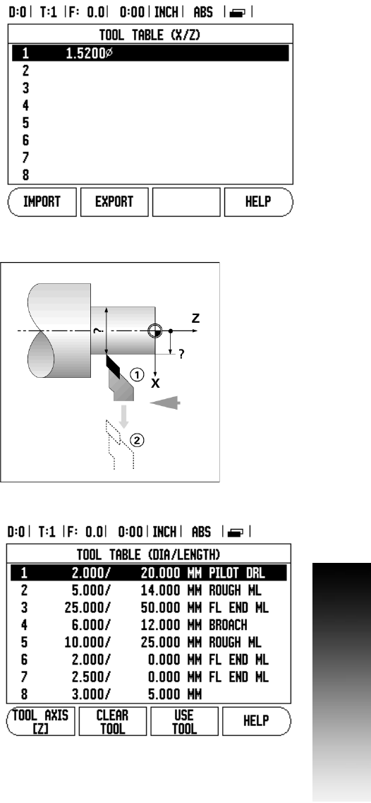 8 IMPORT and EXPORT soft keys are available it the Tool Table
