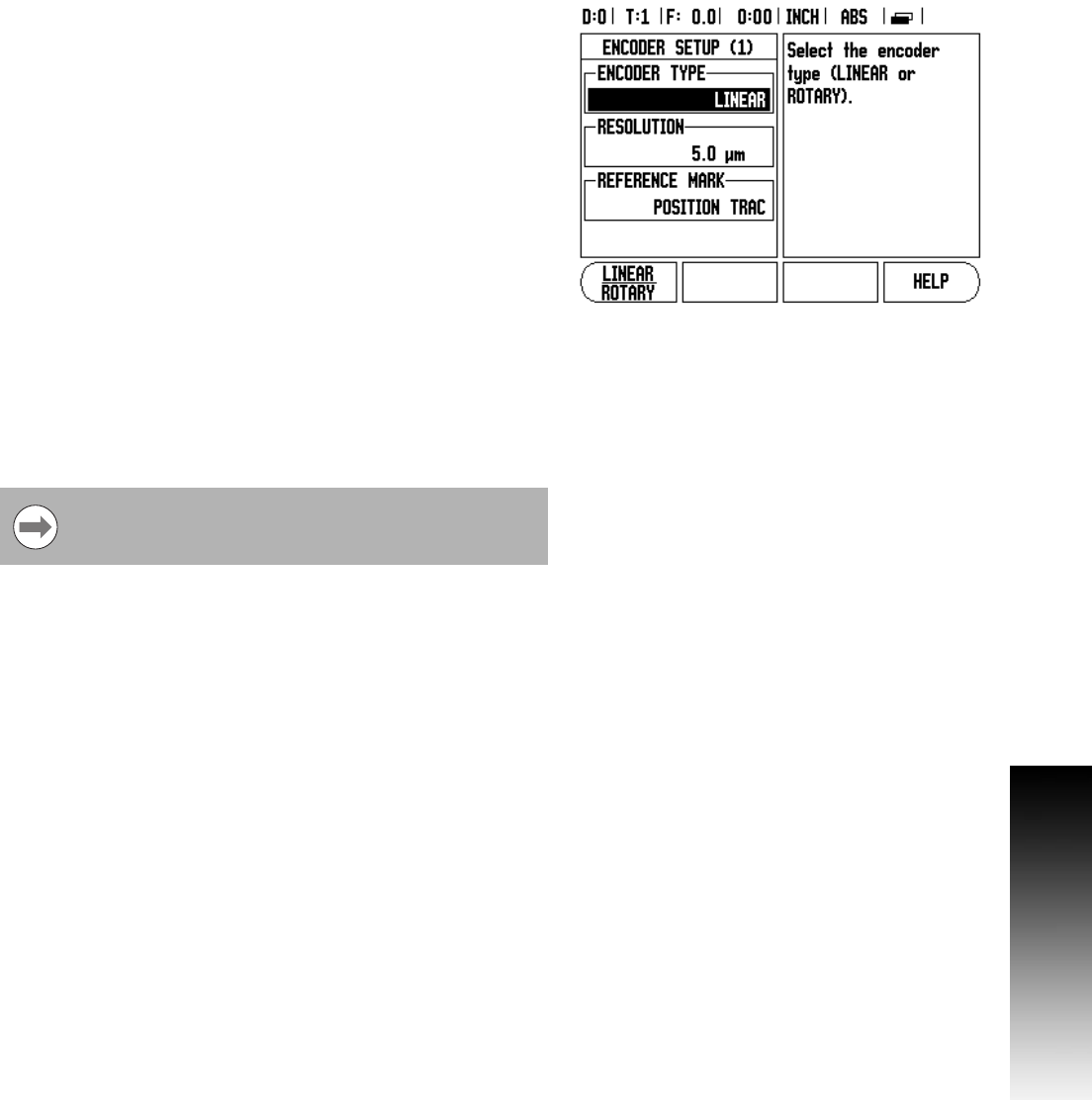 8 Cursor will be in the Encoder Type field. Select the encoder type by