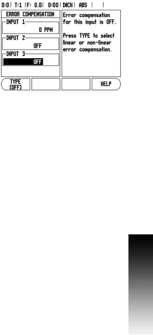directly. Press the TYPE soft key to select LINEAR compensation.