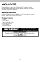 Congratulations on your new AcuRite product. To ensure the best possible product performance, please read this manual in its entirety and retain it for future reference. Unpacking Instructions Remove the protective film that is applied to the LCD screen prior to using this product. Locate the tab and peel off to remove. Package Contents 1. Display 2. 3-in-1 Sensor 3. Sensor Mounting Bracket 4. Mounting Hardware 5. Power Adapter 6.