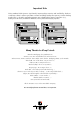 % ,&3 6&6, $FFHVVRULHV Order # Part Name 8840 Fast-SCSI Bracket 8841 Wide-SCSI Adapter 8842 Wide-SCSI Bracket 8843 Wide/Ultra Flat Ribbon Cable Narrow-Wide Bracket 8846 8951 LVDS/SE Terminator 8952 LVDS/SE Terminator for SE/LVDS Hard Disks with SCA Connector. Description External SCSI connector with an internal 50 pin header and an external 50 pin HD SCSI connector (female). 16 Bit to 8 Bit SCSI adapter with a 50 pin header and a 68 pin HD SCSI connector (male).