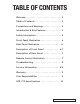 TABLE OF CONTENTS Welcome . . . . . . . . . . . . . . . . . . . . . . . . . . . . . . 2 Table of Contents . . . . . . . . . . . . . . . . . . . . . . 3 Precautions and Warnings . . . . . . . . . . . . . . . 4 Introduction & Key Features . . . . . . . . . . . . . 5 Safety Information . . . . . . . . . . . . . . . . . . . . . 5 Front Panel Illustration . . . . . . . . . . . . . . . . . 6 Rear Panel Illustration . . . . . . . . . . . . . . . . . . 6 Description of Front Panel . . . . . . . . . . . .