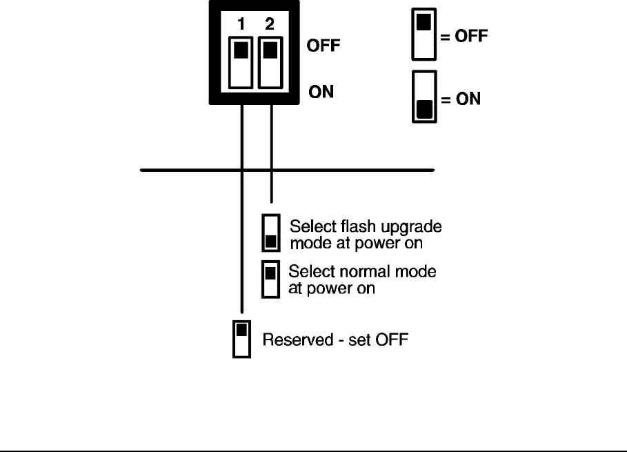 Step 3 - Select flash upgrade mode using option switch 2 (labelled UPGRADE)