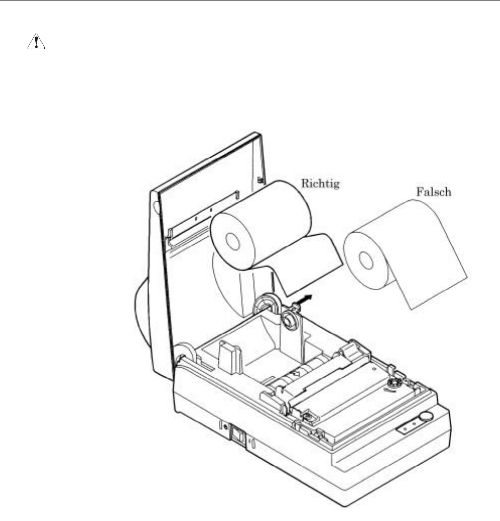 VORSICHT: • Schlaffes Druckpapier durch Zurückdrehen der Papierrolle straffen.