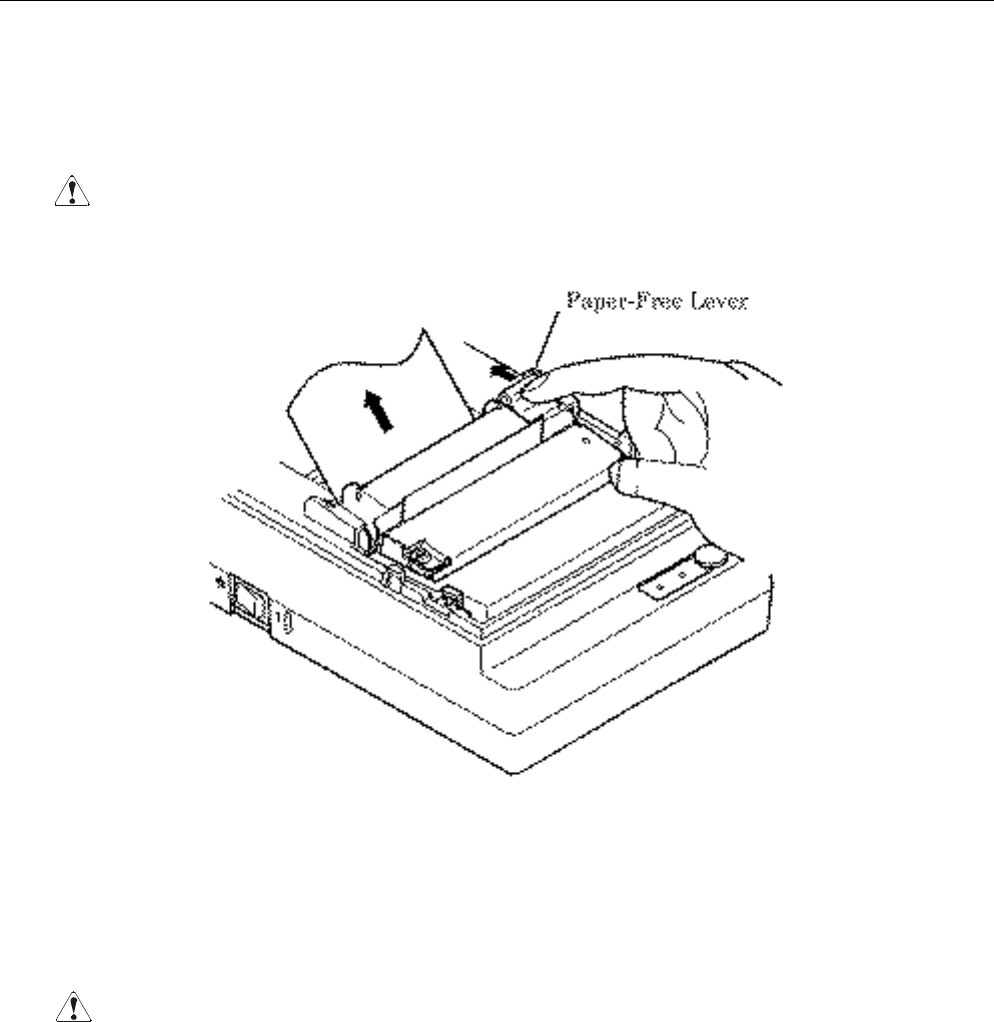 (3) Push the paper-free lever in the arrow direction. The paper feed roller is disengaged, to free the paper,