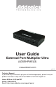 T E C H N O L O G I E S User Guide External Port Multiplier Ultra (AD5EHPMEU3) www.addonics.com v8.1.11 Technical Support If you need any assistance to get your unit functioning properly, please have your product information ready and contact Addonics Technical Support at: Hours: 8:30 am - 6:00 pm PST Phone: 408-453-6212 Email: http://www.addonics.