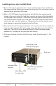 Installing drives into the RAID Rack 1. Be sure the lock on each drive door is in an unlock position. If not, use the key that comes with the Disk Array to unlock the drive door. Pull on the door lever to swing open the drive door all the way. 2. Slide a 3.5” SATA hard drive into the drive slot with the drive connector side facing in.