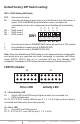 Default factory DIP Switch setting: SW1 – RAID Setting DIP Switch OFF OFF OFF OFF OFF BZS – Error buzzer function EZ – Automatic rebuilding to spare drive (one of the drives on the raid is set as a spare). If EZ is ENABLED anda drive failure occurs, the spare will automatically act as a drive replacement and rebuilding will automatically start. M2 – RAID mode 2 M1 – RAID mode 1 M0 – RAID mode 0 1 2 3 4 5 SW1 BZS EZ M2 M1 M0 1. 2. 3.