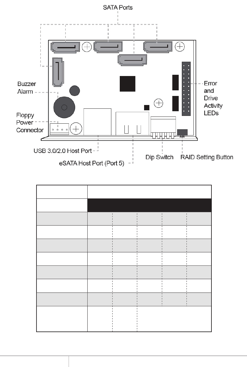 RAID Setting ButtonDip SwitcheSATA Host Port (Port 5)
