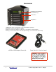 Overview LCD Display, Arrow Buttons, ENT and ESC keys Source Drive Target Drives LCD Display: shows current function selected, information or progress. Arrow keys: used to select menus or options. ENT key: Used to select options or sub-menus, select options or starts functions. ESC key: Used to exit sub-menus, discard option changes, or cancel functions (when held). mSATA to SATA Adapter (Quantity 6) Power Cord (U.S.