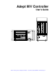 Connecting AC Power Power Entry Module The power entry module is located at the lower left side of the controller front panel. It contains: • the On/Off power switch ( I = On, o = Off) • the AC power cord socket • the two incoming AC line fuses adept technology, inc. WARNING: FOR CONTINUED PROTECTION AGAINST RISK OF FIRE, REPLACE ONLY WITH SAME TYPE AND RATING OF FUSE. Figure 4-1. Power Entry Module Connecting AC Power Cord The AC power cord is included in the accessory kit.