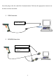 3. RS232 Connection connect with host require adapter for power supply NOTE: for Serial port (RS232 cable), please plug the power connector of 5V power adapter to RS232 cable. 1. Be sure that Host computer is turned on. 2. Ensure that all connections are secure. 3. Turn on your host. And please operate the scanner under the right software application. 4. Aim the scanner at a barcode, ensure that the scanner is in trigger mode (default), and press the trigger. 5.