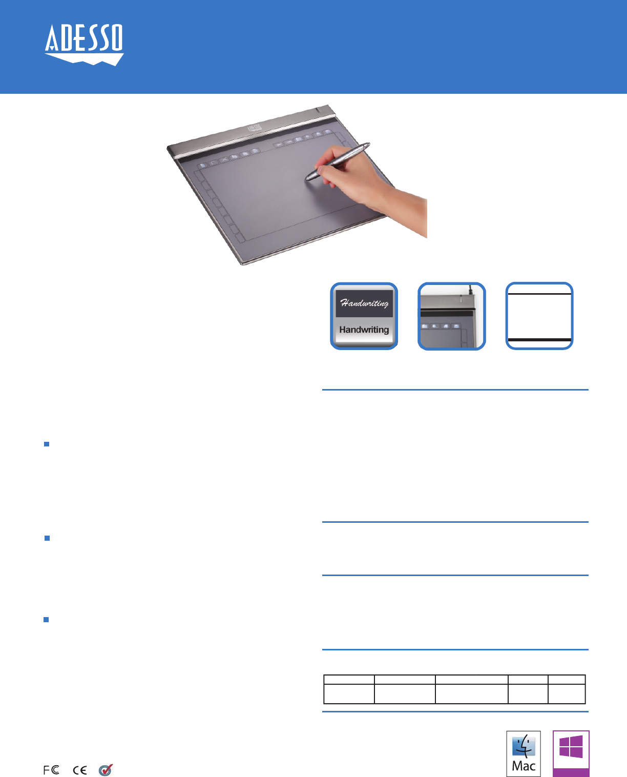 Tablet Sensitivity: 2000 Lines per Inch