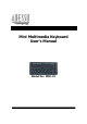 Mini-Media Keyboard 1. Introduction Congratulations on purchasing the Mini Multimedia Keyboard. The Mini Multimedia Keyboard combines a standard mini keyboard layout with eleven (11) convenient multimedia buttons and 3 additional power management hot keys. Key Features: ¾ Volume Control Buttons ¾ WWW and E-mail Access Buttons ¾ Media Control Keys Contents: The following items are included in the package. Please make sure all items are included as you open the package.