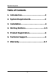 Mini-Media Keyboard Table of Contents 1. Introduction……………………………….. 3 2. System Requirements……………..….…3 3. Installation………………………………….4 4. Hot Key Buttons………………………….4-5 5. Product Registration……………………..6 6. Technical Support…………………………6 7. Warranty…………………………………..