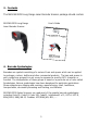 c. Serial Port (RS-232) Connection NOTE: For Serial port (RS-232), please plug the power connector of 5V power adapter to RS232 cable. 1 1. 2. 3. 4. Be sure that Host computer is turned off. Ensure that all connections are secure. Turn on your Host. Aim the scanner at a barcode. Ensure that the scanner is in trigger mode (default), and press the trigger. On successful decode, the blue LED light will turn on and off and the scanner will beep once.