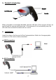 5. Product Introduction Buzzer Exit Window Handle Trigger When a barcode is successfully decoded, the blue LED light of the scanner will turn on and off and the scanner will beep once. If the barcode is not successfully read, the LED will show red and the buzzer will not sound. 6. Installation Insert the plug on the free end of the Communications Cable into the appropriate connector on the host as below described: a. USB Connection Host b.