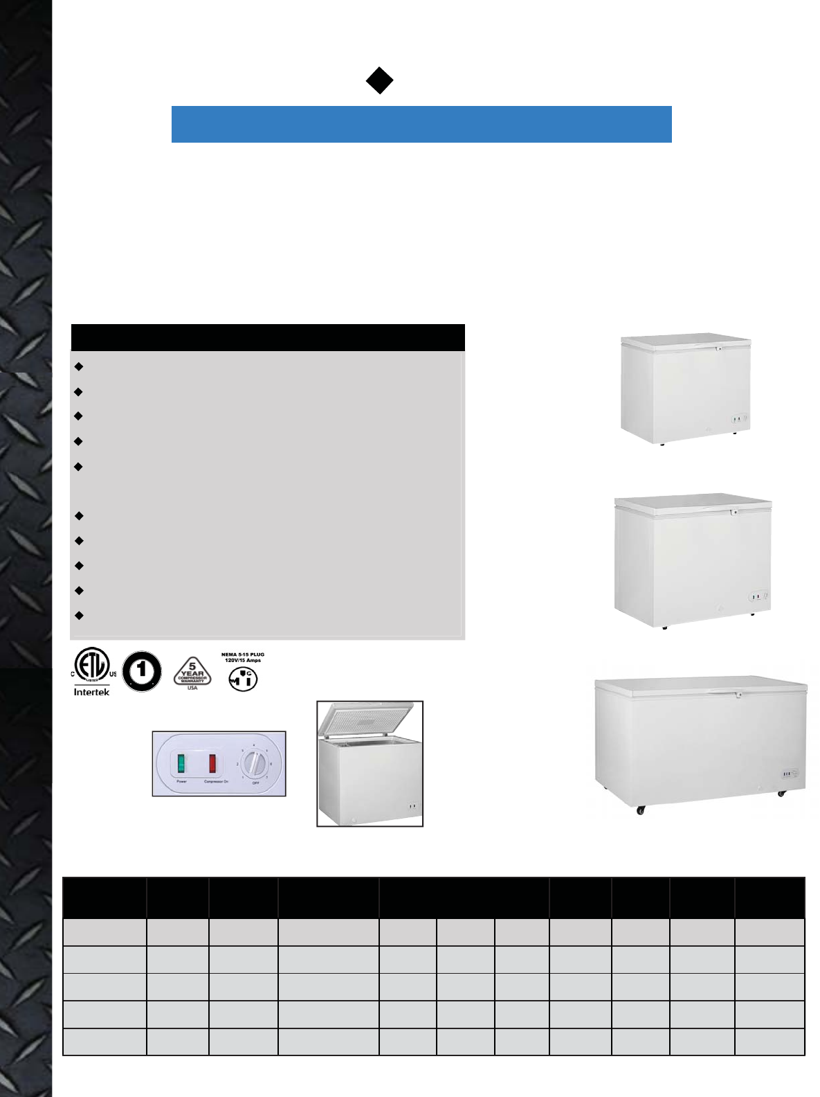 easy cleaning. These models are ETL Listed and are backed with a 1 year w arranty on parts and a 5 year