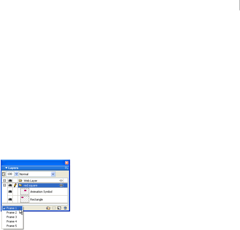 ❖ Select the desired frame from the Frame pop-up menu at the bottom of the Layers panel.