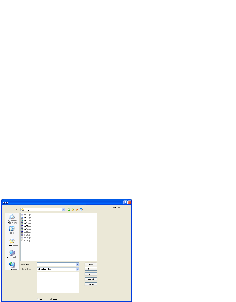 1 Select File > Batch Process, and select the files to process. You can select files from different folders, and you can