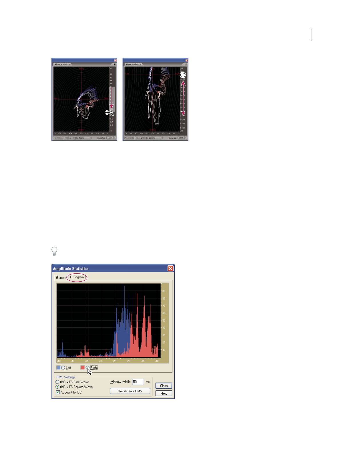 • The Histogram tab displays a graph that shows the relative prevalence of each amplitude: The horizontal ruler