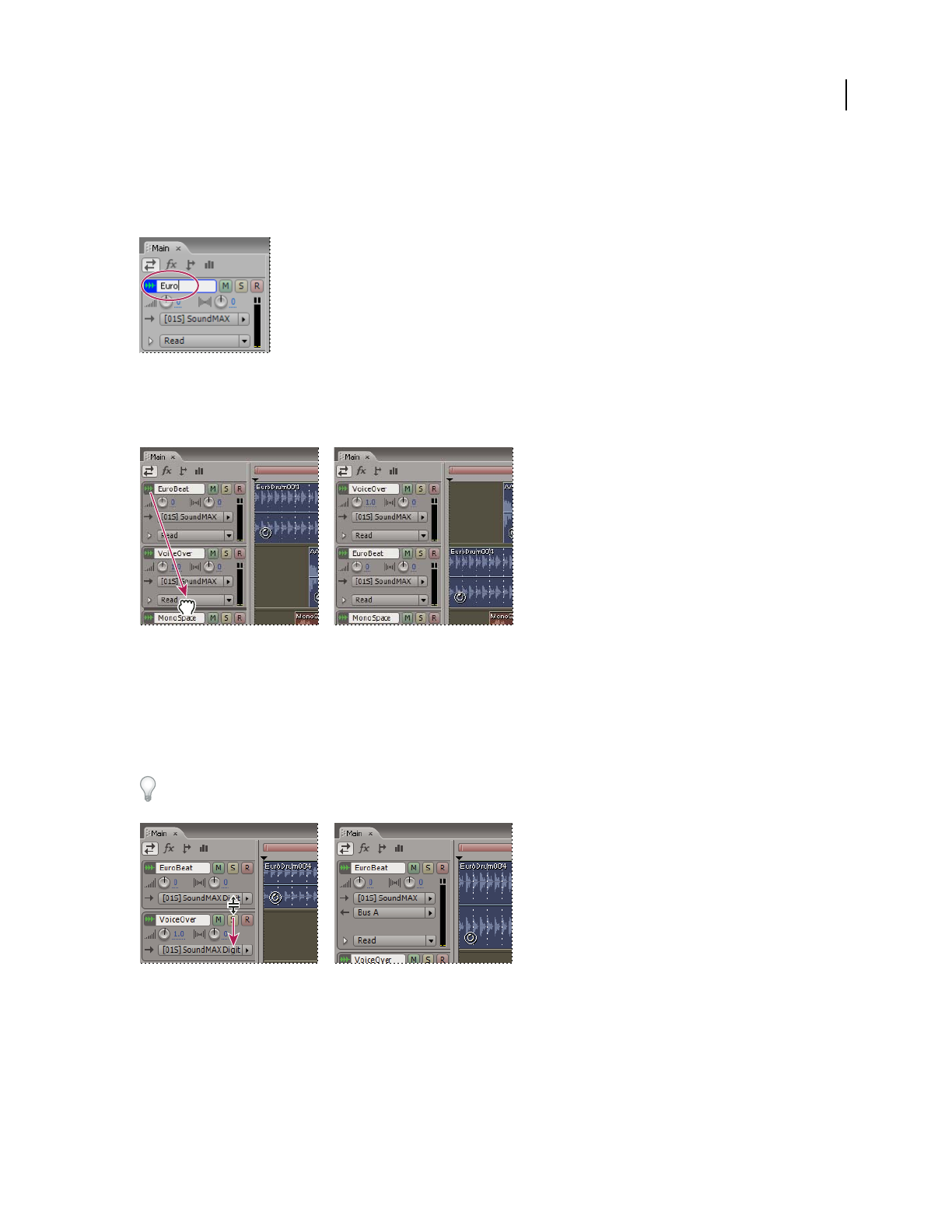 • Position the pointer to the left of the track name, and then drag either up or down in the Main panel, or right or