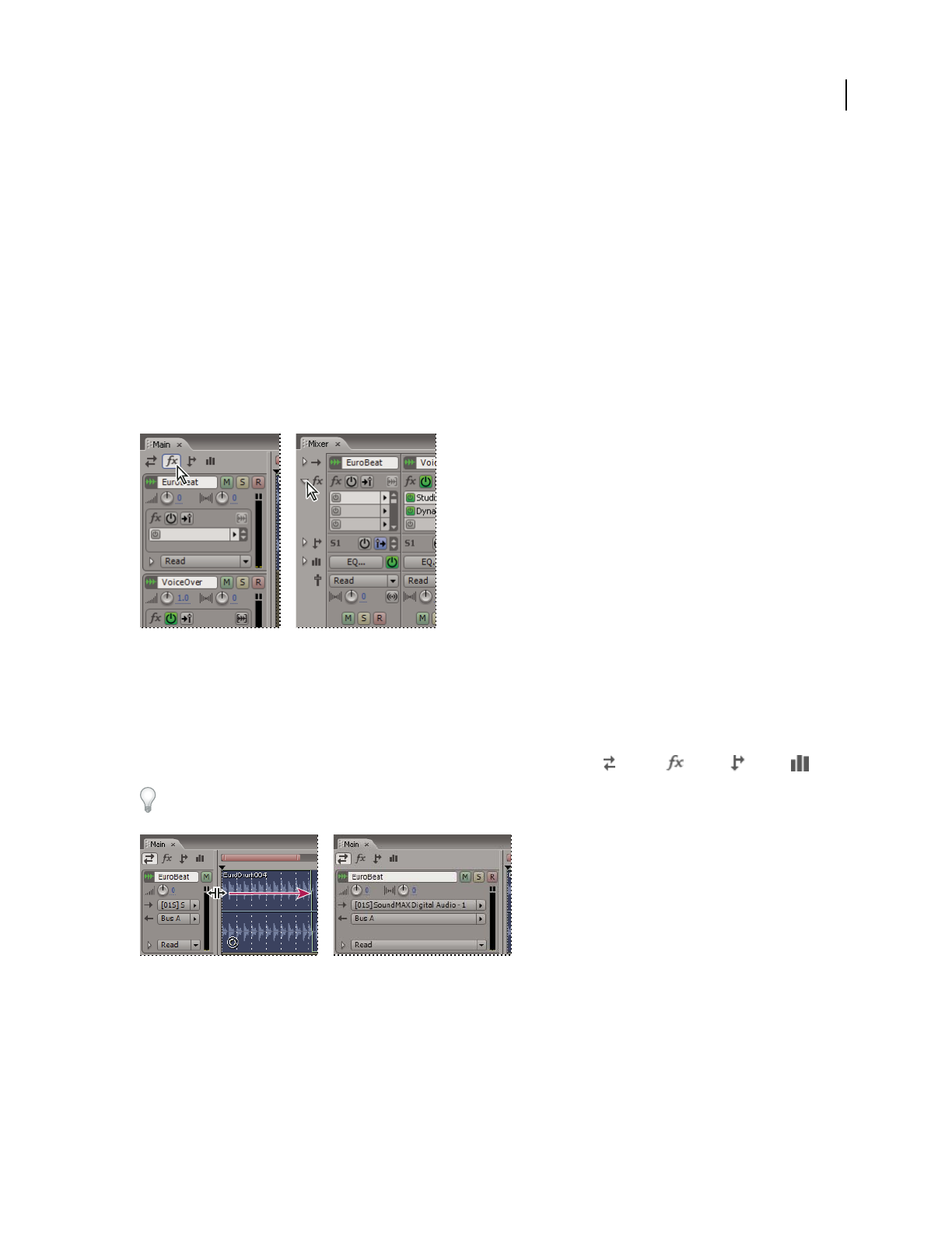 • On the left side of the Mixer, click the Show/Hide triangle for one or more sets of controls.