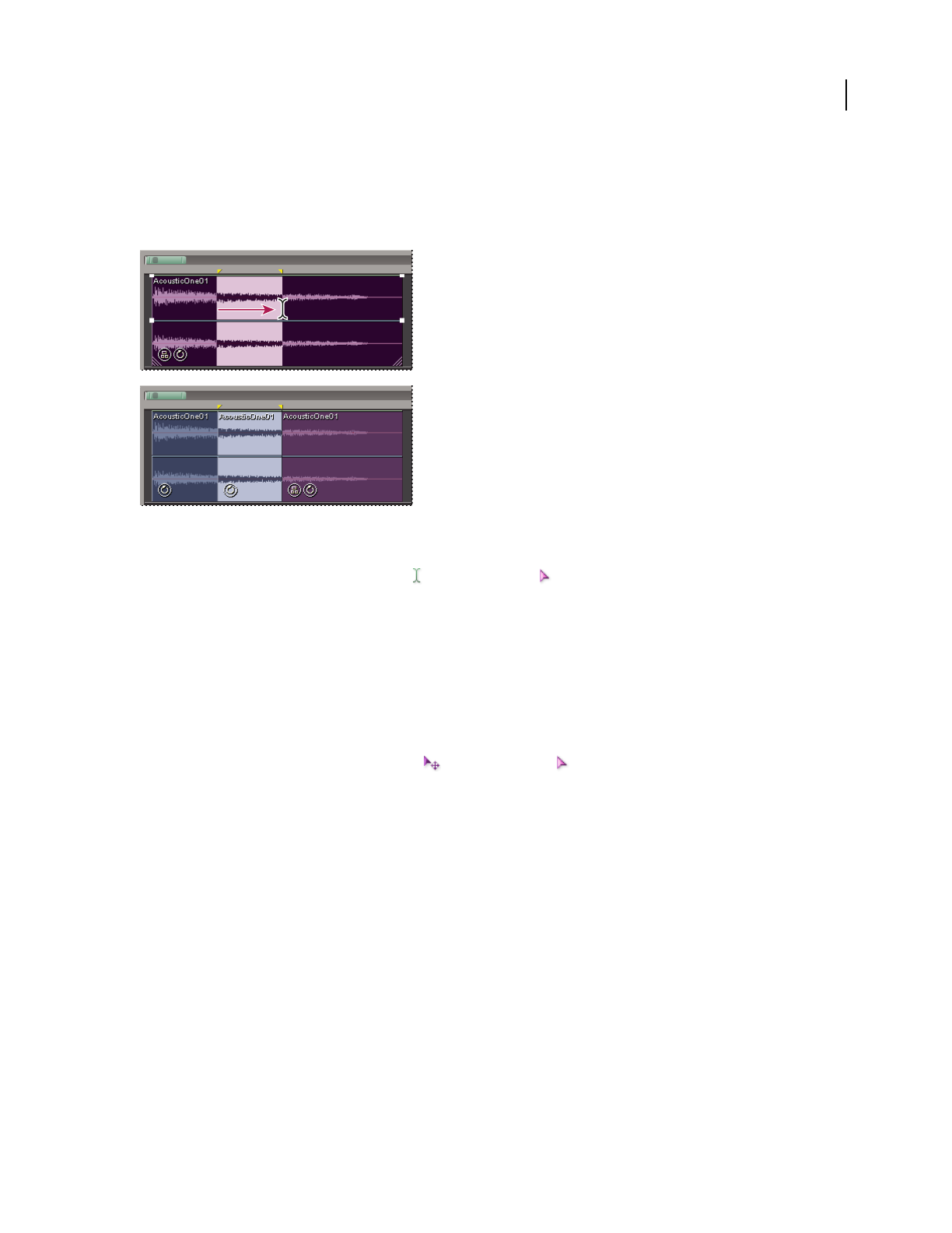 The Split command functions like a traditional tape splice; it cuts audio clips into parts. When a clip is split, each