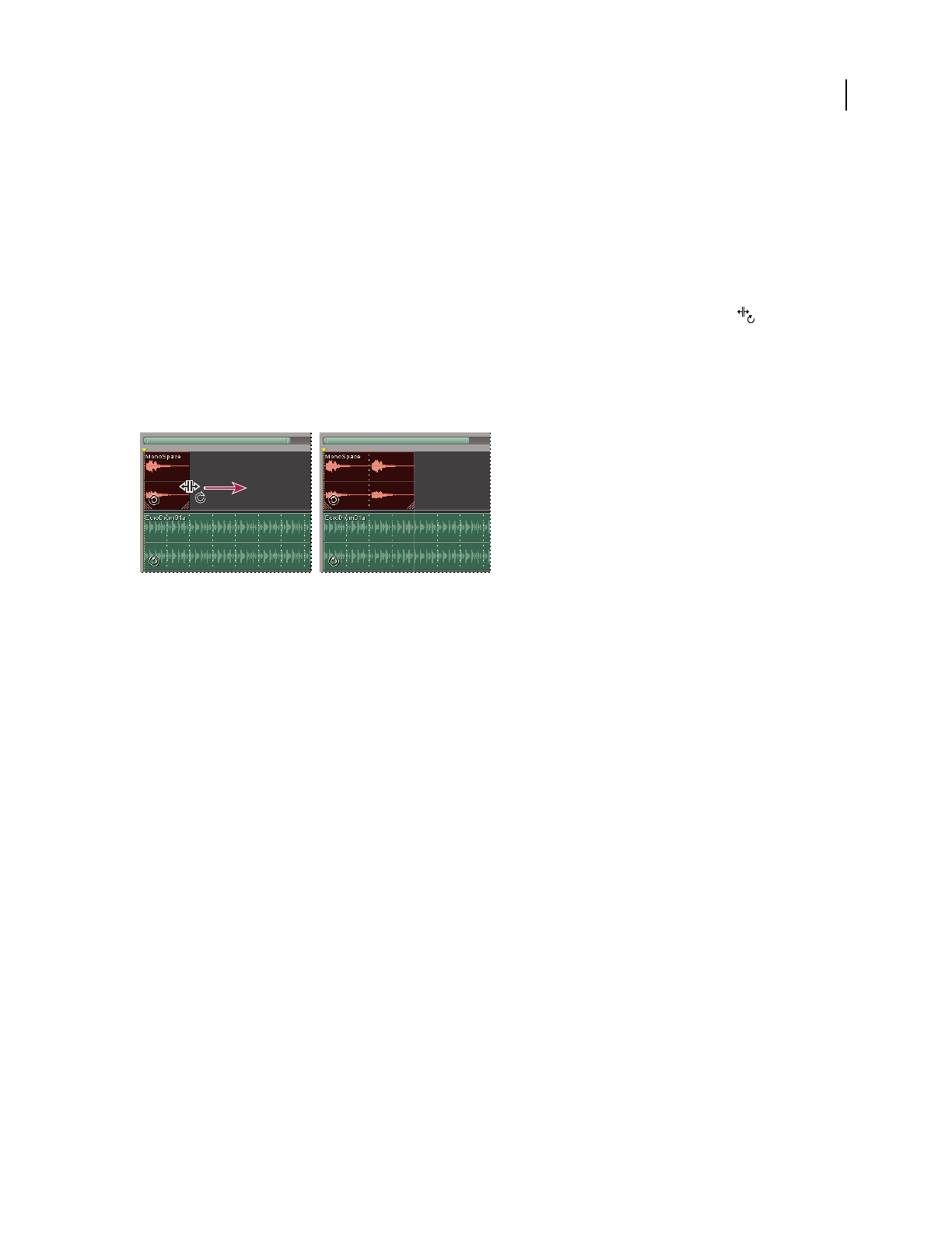 A. Positioning the pointer over the clip handle B. Dragging the loop, with snap-to lines indicating beats in other tracks