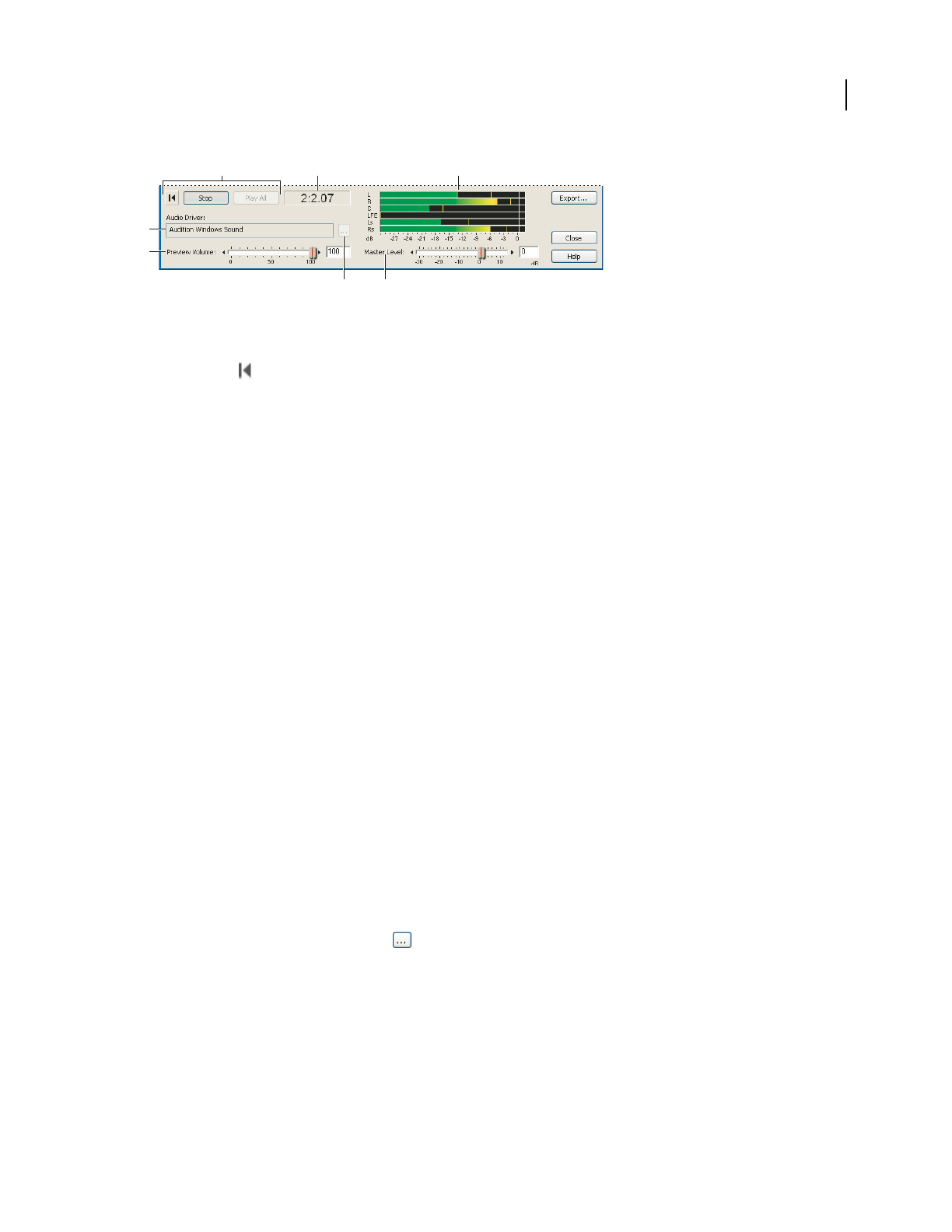 Preview Device, Format Displays the currently selected device to which Adobe Audition routes the six-channel,