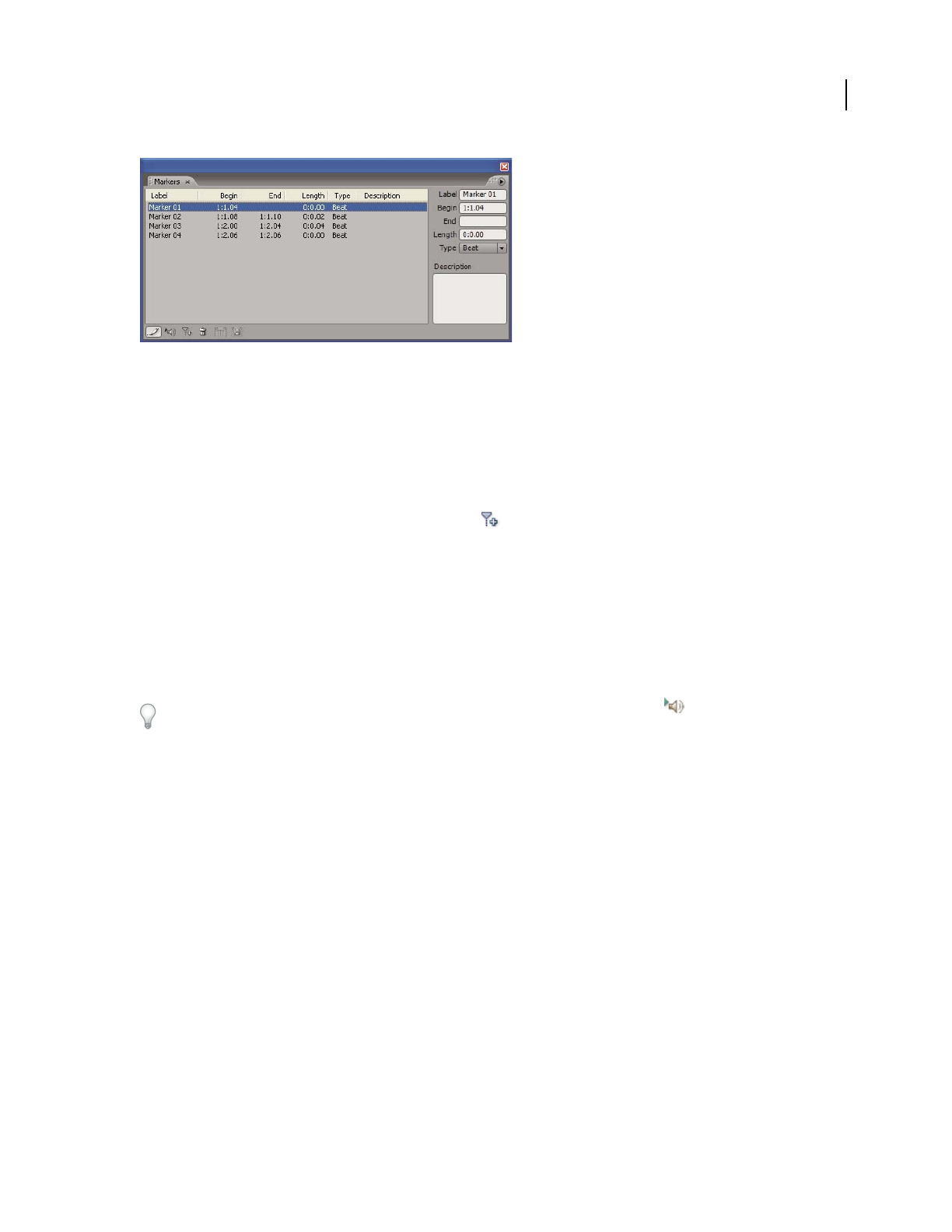 After creating markers, you can fine-tune them to best address the needs of an audio project.
