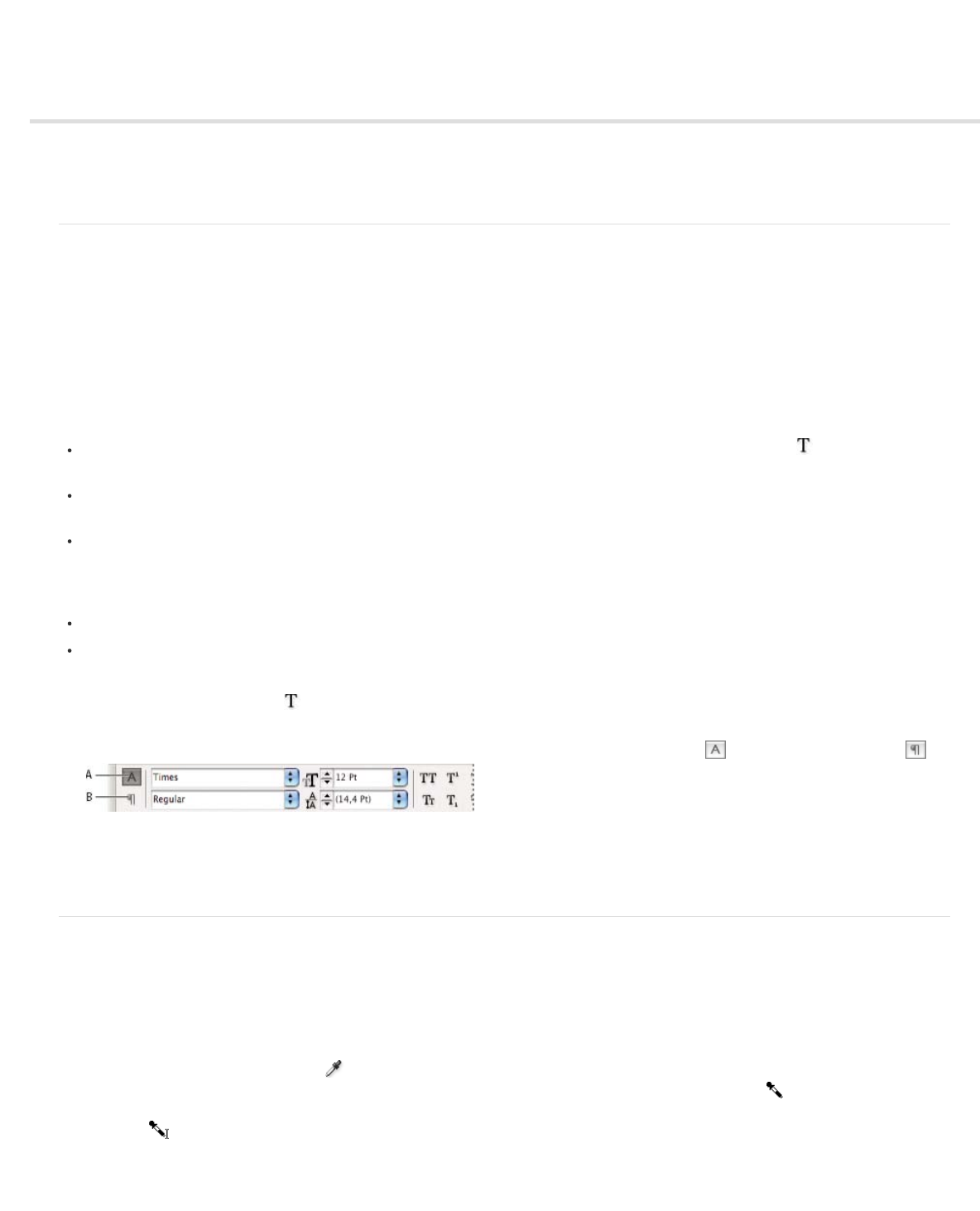 Dieselben Formatierungssteuerelemente finden Sie auch im Zeichen- und im Absatzbedienfeld. Auch zum Ändern des Erscheinungsbilds von Text