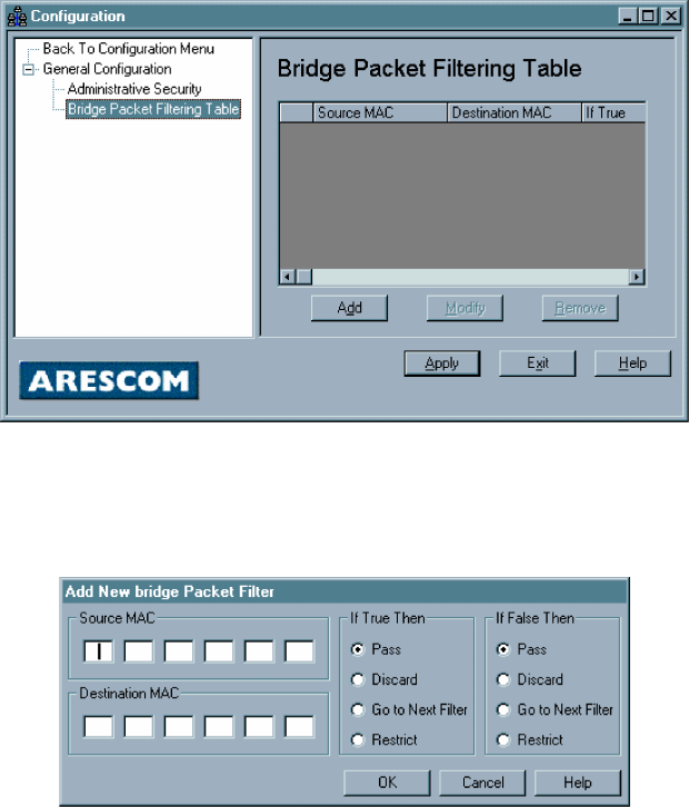 this panel, you can Add New Bridge Packet Filter, Modify Bridge Packet Filter,