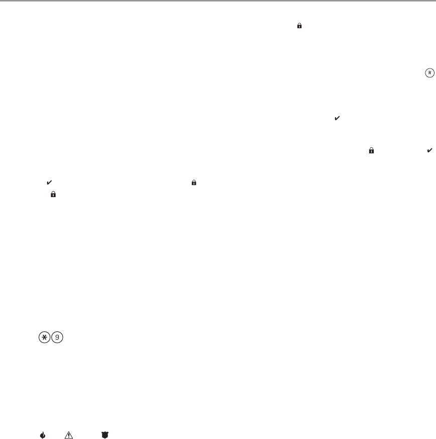 installer has programmed this button). During the setting state (exit delay active), the Armed ( ) and Ready ( )