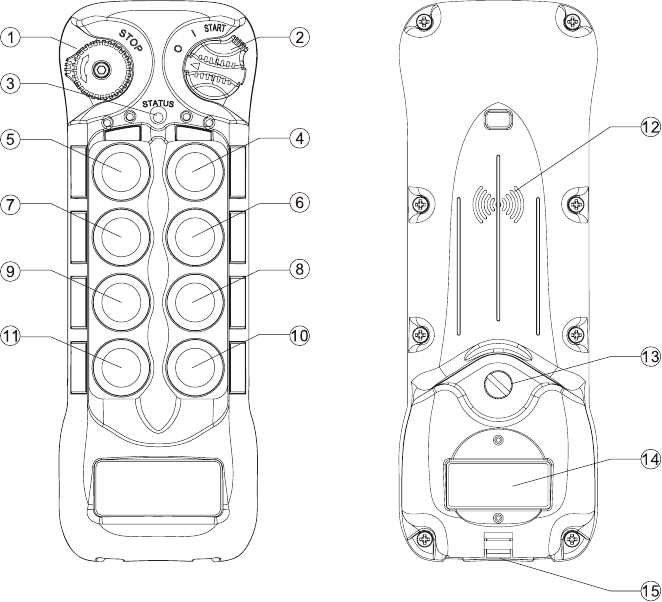 7. Pushbutton 4 (PB4) 15. Lanyard and Waist Belt