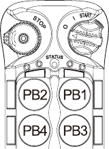 2) With the STOP button elevated, press and hold PB1 and PB2