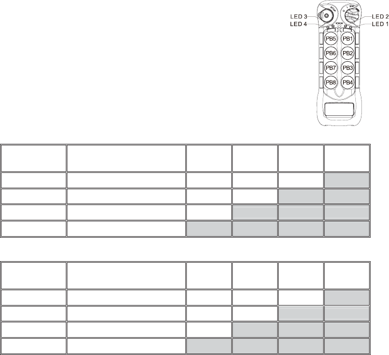 LED indications. LED 1 ~ 4 shown inside the shaded box
