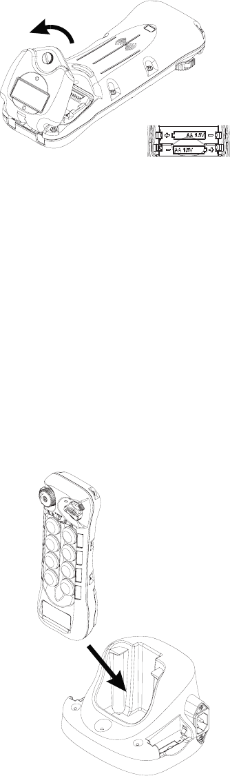 Changing transmitter batteries (“AA” alkaline battery x 2) by unscrewing the battery cover