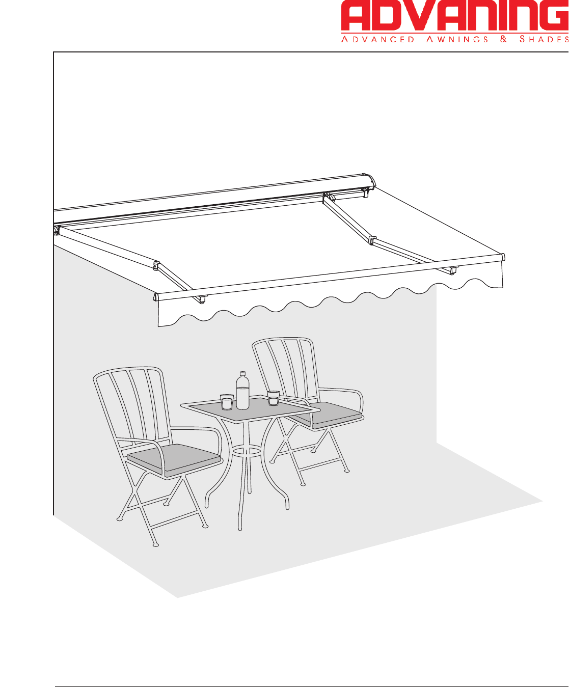 SAFETY INSTRUCTIONS AND WARNINGS TO REDUCE THE RISK OF FIRE, ELECTRIC SHOCK, OR INJURY • Pay close attention during installation to ensure that the Advaning awning is installed properly. • Perform the installation in dry and optimal conditions. Always wear protective gear and gloves when handling sharp metal parts. If you do not feel that you can properly install the awning, please seek professional help.
