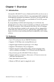 Contents Chapter 1 Overview .......................................................... 2 1.1 1.2 1.3 1.4 Chapter Introduction ....................................................................... 2 Features ............................................................................. 2 Specifications .................................................................... 3 Package Checklist ............................................................. 5 1.4.1 1.4.2 2 Getting Started .....................