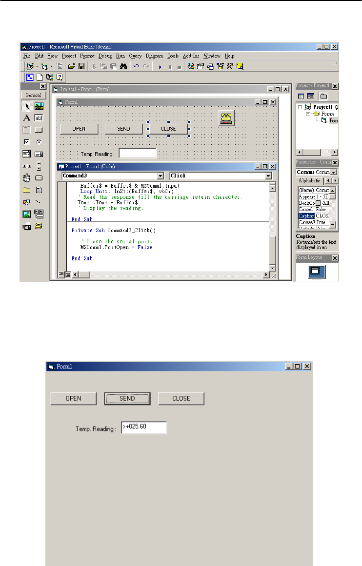Step 10. Run the Project → Click OPEN to open COM1 → Click SEND to