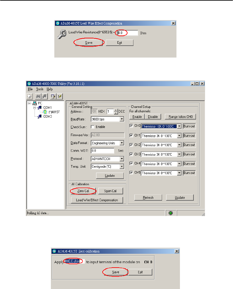 Apply 800.0 ohms resistor with 0.01% accuracy to CH0 and then