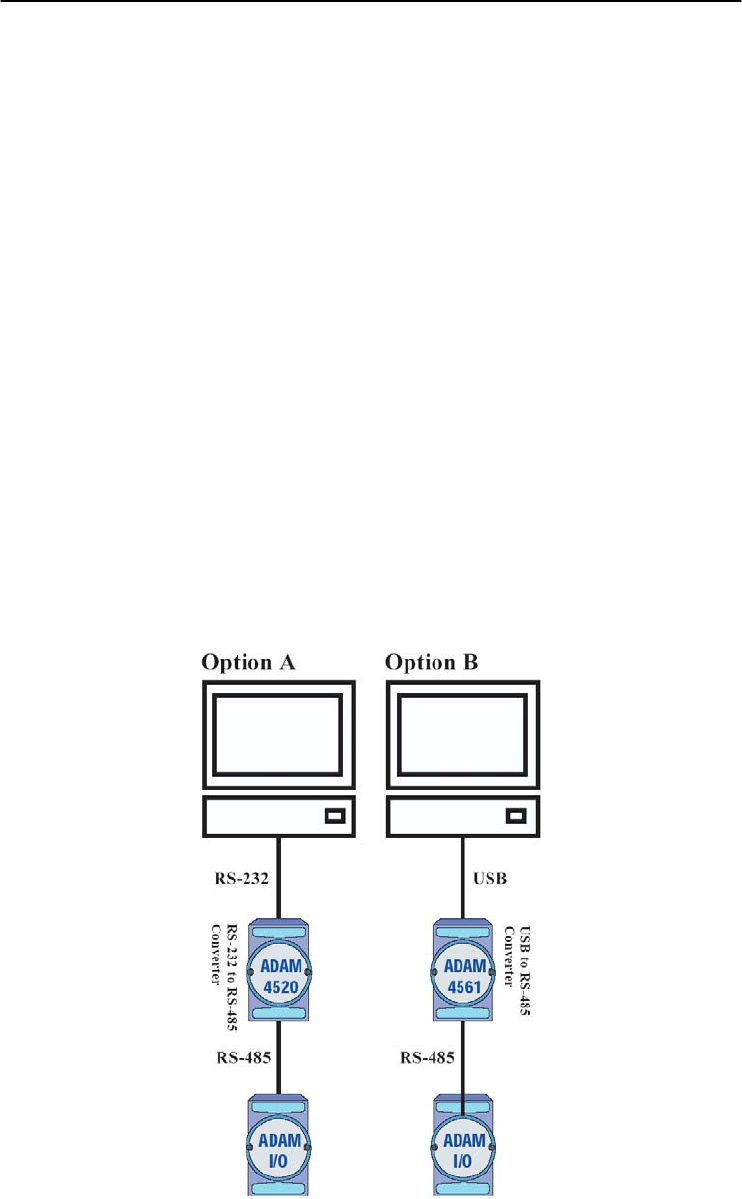 5. Connect computer to the ADAM I/O module using a RS-232 to RS-485,