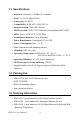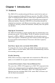 Contents Chapter 1 Introduction ..................................................... 2 1.1 1.2 1.3 1.4 1.5 1.6 Chapter Features ............................................................................. 2 Feature Summary .............................................................. 3 Specifications .................................................................... 4 Packing List....................................................................... 4 Ordering Information ..........................