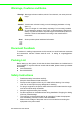 Warnings, Cautions and Notes Warning! Warnings indicate conditions, which if not observed, can cause personal injury! Caution! Cautions are included to help you avoid damaging hardware or losing data. e.g. There is a danger of a new battery exploding if it is incorrectly installed. Do not attempt to recharge, force open, or heat the battery. Replace the battery only with the same or equivalent type recommended by the manufacturer. Discard used batteries according to the manufacturer's instructions.