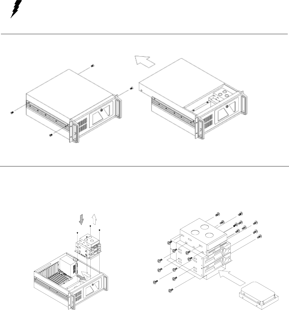 1. Remove the four outer screws which mount the shock-resistant drive-bay to the chassis. (See Fig. 2-2)