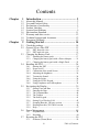 Contents Chapter 1 Introduction ..................................................... 2 1.1 1.2 1.3 1.4 1.5 1.6 1.7 1.8 1.9 Chapter About this Manual............................................................. 2 User and Product Safety.................................................... 3 Declaration of conformity ................................................. 5 Product Labeling ............................................................... 7 System Specifications ...................................