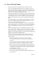 1.2 User and Product Safety • • • • • • • Do not stare into the laser beam directly or shine it into eyes. Never use strong pressure onto the screen or subject it to severe impact, as the LCD panel could become cracked and possibly cause personal injury. If the LCD panel is broken, never touch the liquid inside, for such contact would irritate the skin.